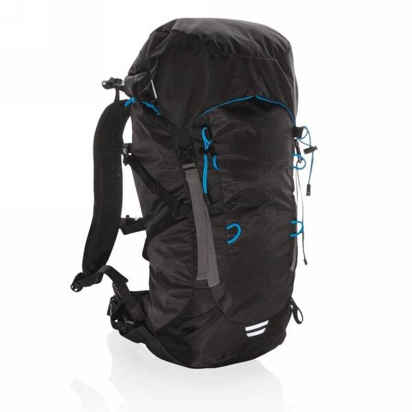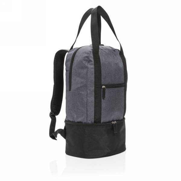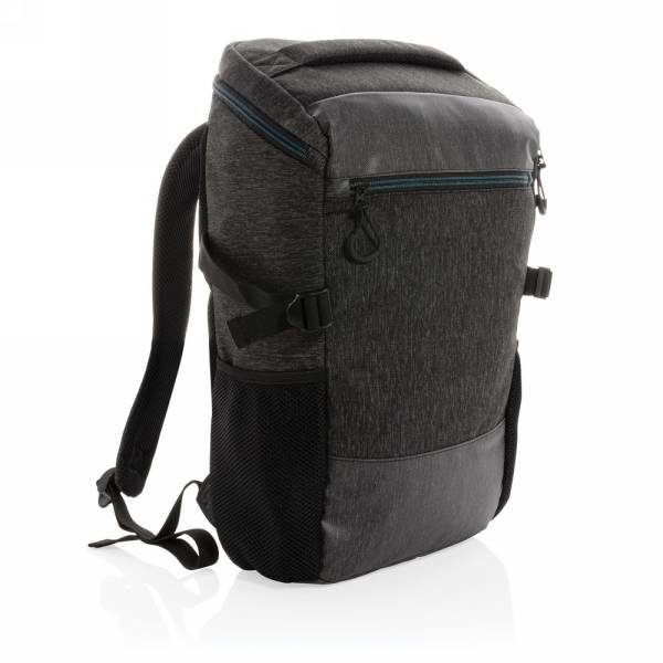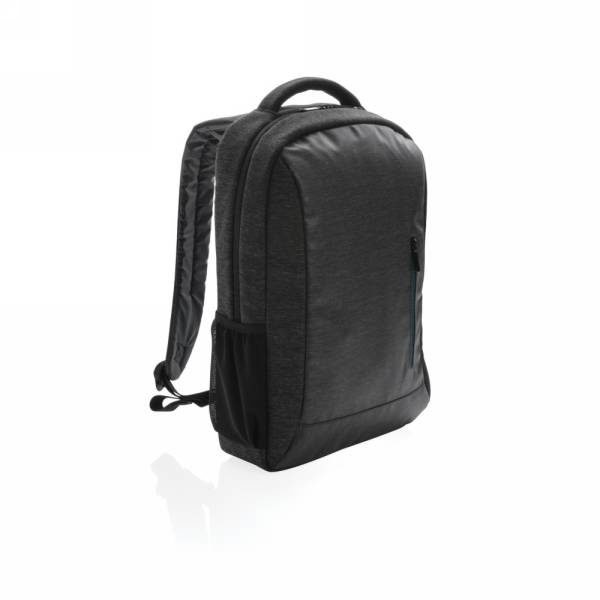 Streamlined styling and intelligently placed features add up to a minimalist footprint with this 600D & 1680D polyester backpack. 1 big main compartment sized to fit laptops with up to 17 inch displays. Second compartment with practical organization for everything else you need to carry. With side mesh water bottle pocket. PVC free.