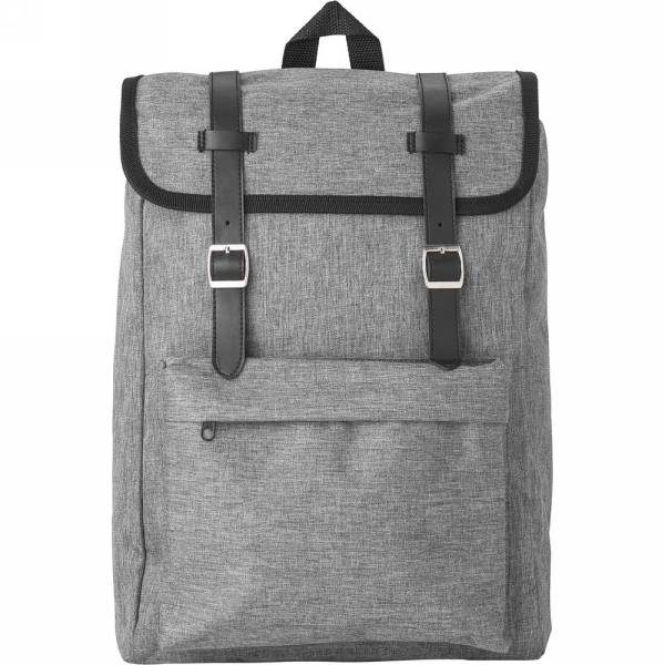 Backpack, roomy main compartment, flap closed with 2 metal buckles, padded, adjustable shoulder straps and back