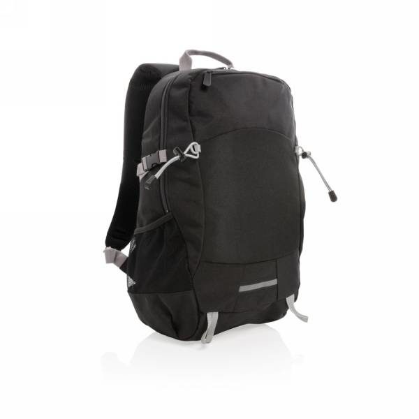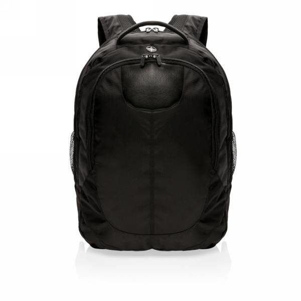 1680D polyester laptop backpack with unique balance between comfort and outdoor protection. The backpack covers pockets for all your necessities from padded laptop compartment and iPad holder, to pen loops and mesh pockets. On the shoulder strap there is an audio jack to connect your headphone and a sunglass carrier. It even has a rain cover to protect it all. Registered®