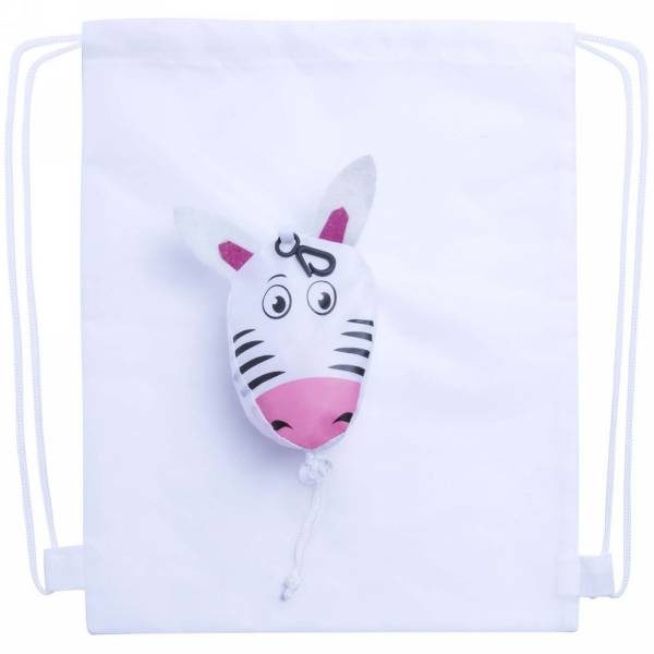 Foldable drawstring bag, animal shaped pouch (02-zebra, 07-giraffe, 08-duck, 11-whale), with carabiner clip