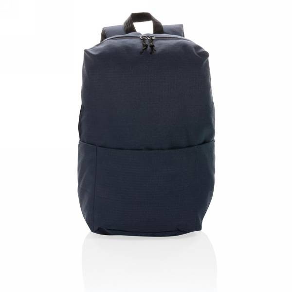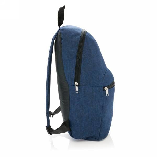 This casual backpack is a simplistic and practical carry-all for everyday use. The backpack is made from durable polyester fabric and features a streamlined design. This backpack has a roomy main compartment to hold your daily essentials as well as a separate front zipper pocket to hold other small personal items and two side pockets for your water bottle and umbrella. PVC free.
