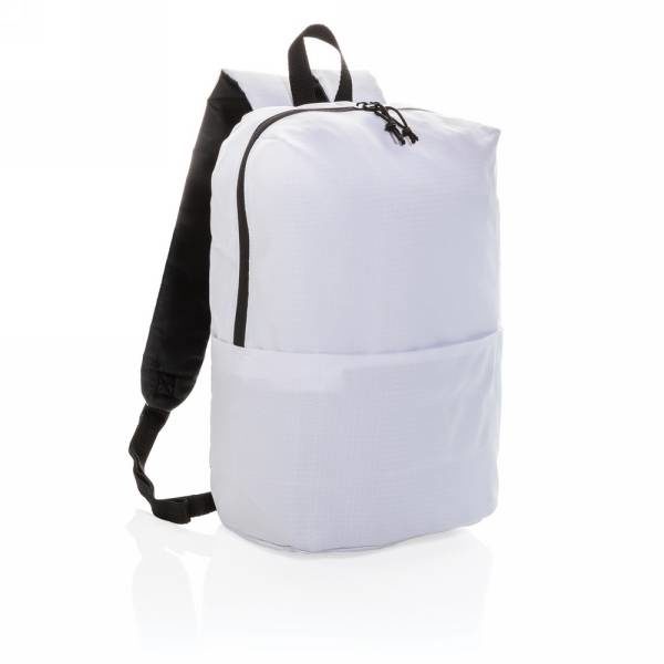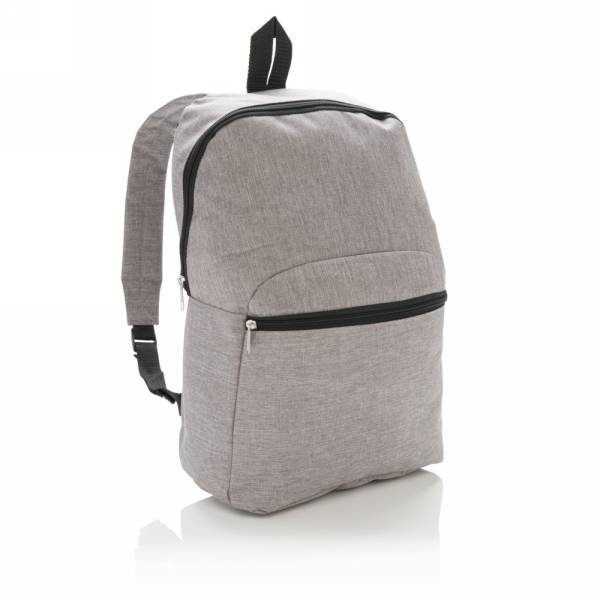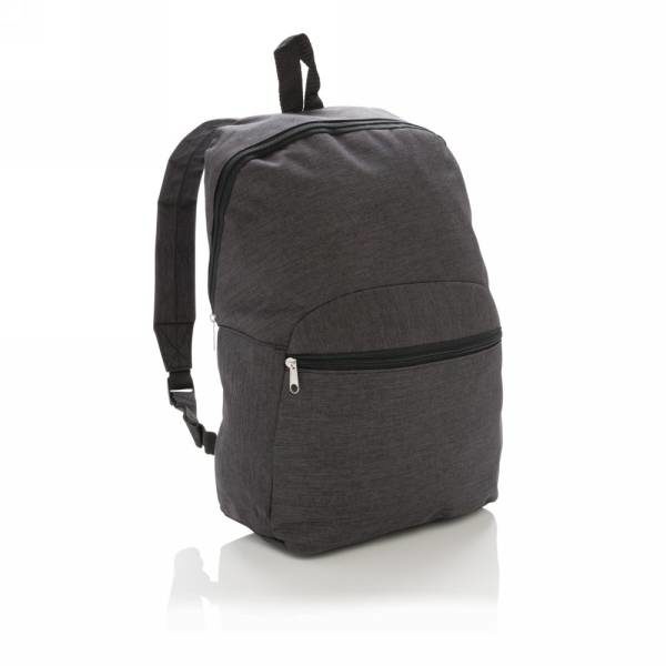 This casual backpack is a simplistic and practical carry-all for everyday use. The backpack is made from durable polyester fabric and features a streamlined design. This backpack has a roomy main compartment to hold your daily essentials as well as a separate front zipper pocket to hold other small personal items and two side pockets for your water bottle and umbrella. PVC free.