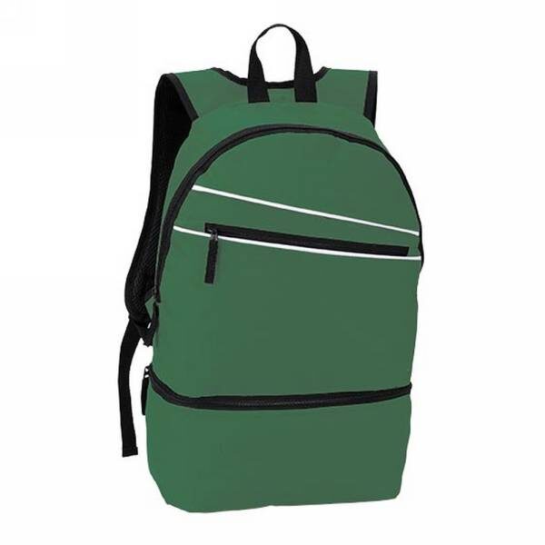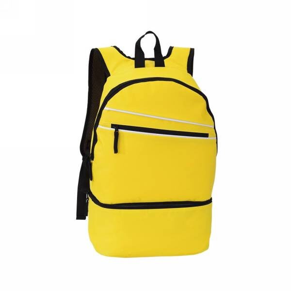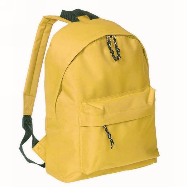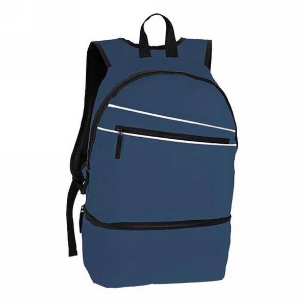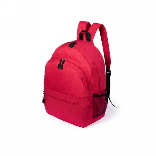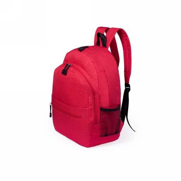 Backpack with zipped main compartment and front pocket, side mesh pocket, padded back and shoulder straps