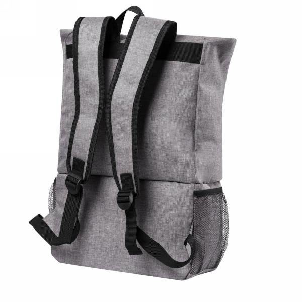Backpack with main compartment with buckle closure and zipped front pocket, side mesh pocket, padded shoulder straps