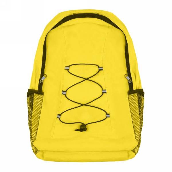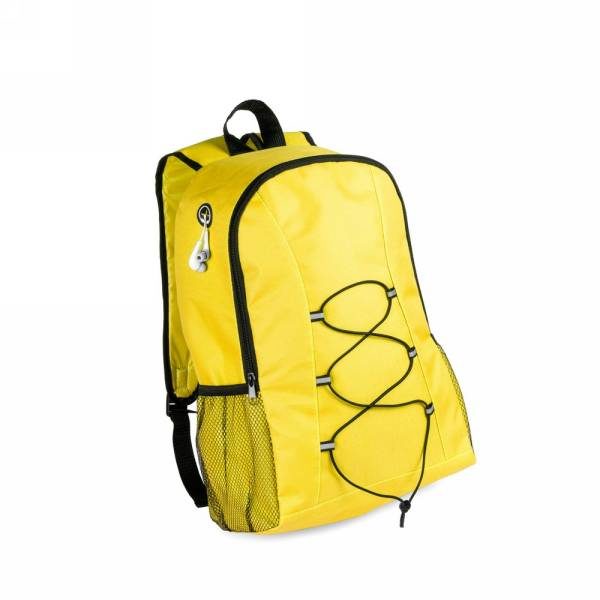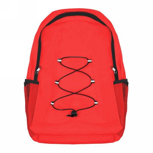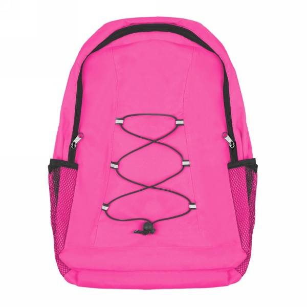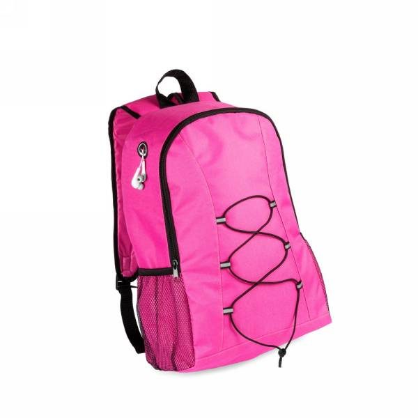 Backpack with front pocket with velcro closing, mesh pocket on side and large zipped compartment