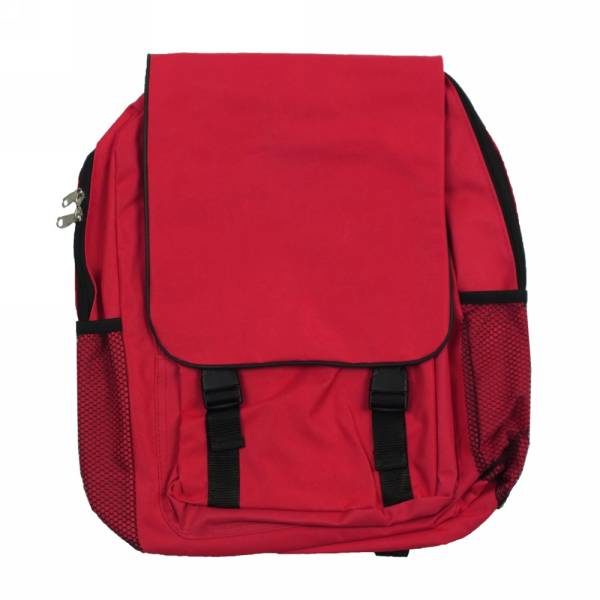 Backpack with main compartment, zipped front pocket, 2 side mesh pockets, padded shoulder straps