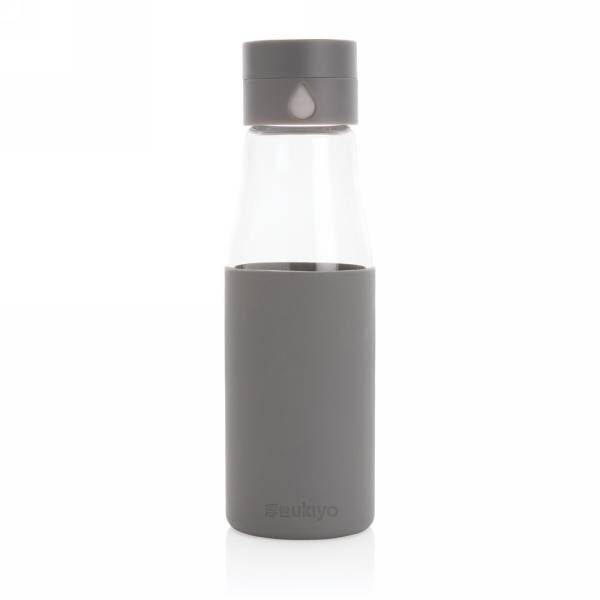 Ukiyo glass hydration tracking bottle with sleeve P436.725