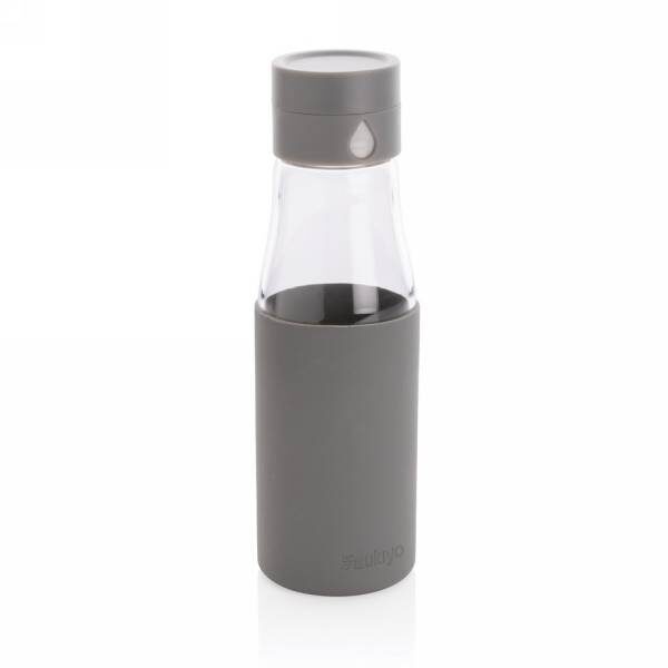 Ukiyo glass hydration tracking bottle with sleeve P436.725