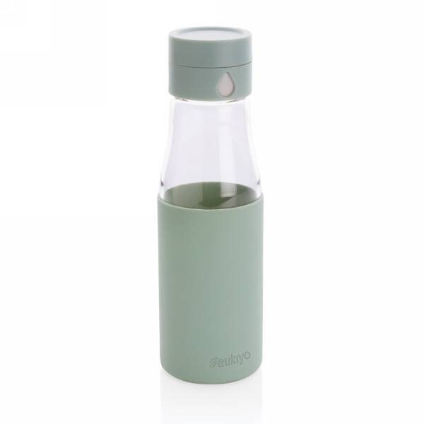 Ukiyo glass hydration tracking bottle with sleeve P436.722