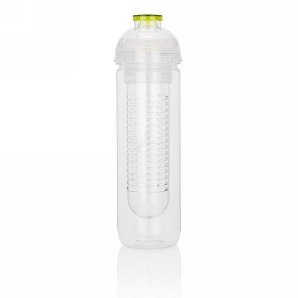 500ml Tritan bottle with fruit infuser compartment. Infuse your water a load of and flavour by adding fresh fruits into the infuser compartment. The infuser compartment can also be used to chill your water by adding ice cubes.