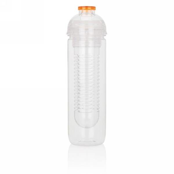 800ml Tritan bottle with fruit infuser compartment. Infuse your water with a load of vitamins and flavour by adding fresh fruits into the infuser compartment. The infuser compartment can also be used to chill your water by adding ice cubes.