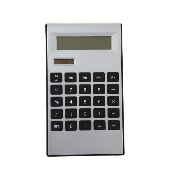 Mobile phone shaped 10 digit calculator, including memory, percentage and square root calculations functions