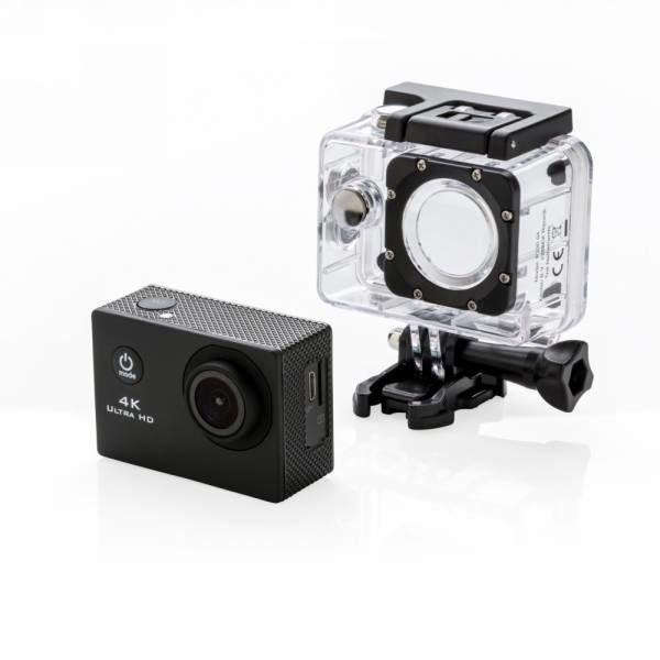 State of the art HD sport camera with 4K resolution. On the back there is a 1,5 inch TFT LCD screen to view your movies instantly in high quality. The memory can be expanded up to 32 GB using a micro SD card. (SD card not included) Including waterproof casing. Recording time about 70 minutes. 11 accessories included: water proof case, helmet mount, bicycle mount , clip, connector, joint, 2 band , 2 pcs tape, Micro USB charging cable Battery size: 650 mAh. Waterproof up to 30 metres.