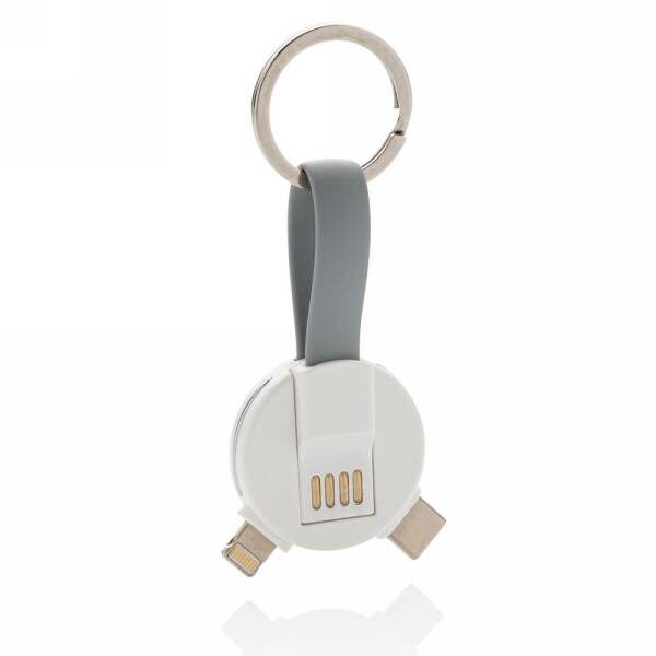 Braided nylon multi cable with 5 different connectors: USB C in, USB A in, type C out, IOS out and micro USB out. This allows you to use the cable also with type C output devices that are included in the newer generation of phones and macbook computers. The cable also has a USB A output input option so it can charge any device from any output source. ABS casing with option to engrave your logo that will light up when the cable is being used. PVC free. Lenght 120 cm.