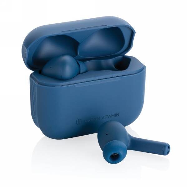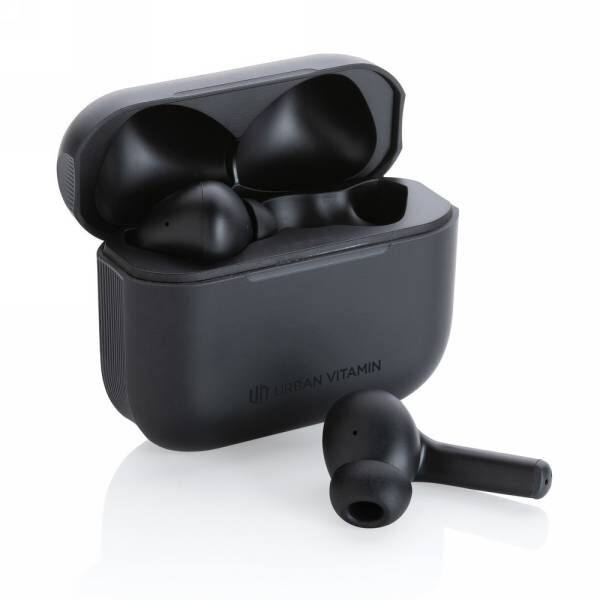 When you open the case and put in the earbuds, the intense bass hits you. How can an item so compact and portable deliver such rich and deep sound? The earbuds and portable charging case are designed to carry them no matter where you go and fit easily into your pocket. The comfortable earbuds have up to 5 hours of listening time and the charging case allows up to 20 hours of playback. Enough to keep you going all day! When receiving a call simply answer it in stereo sound thanks to the 2 integrated microphones. With the integrated touch control function you only have to tap the earbud to answer in crystal clear quality. The IPX 5 rating makes the earbuds weather,sweat and splash proof so no worries to take them outside. Urban Vitamin items are made without PVC and packed in 100% plastic free packaging.