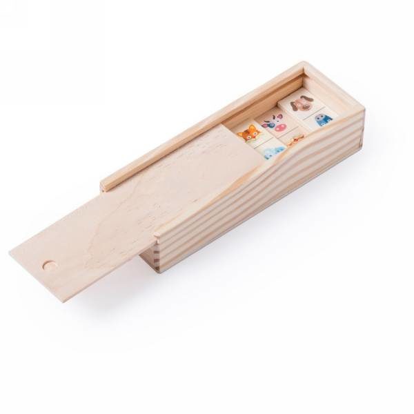 5 in 1 game set including: mikado, playing cards, domino, chess and backgammon. White pine wood box 17x17x3,7cm with black print chess board at one side of lid and black/red printed backgammon board on bottom of box. One side of sliding lid for logo imprint. Packed in black box with separate red lid and red felt inside.