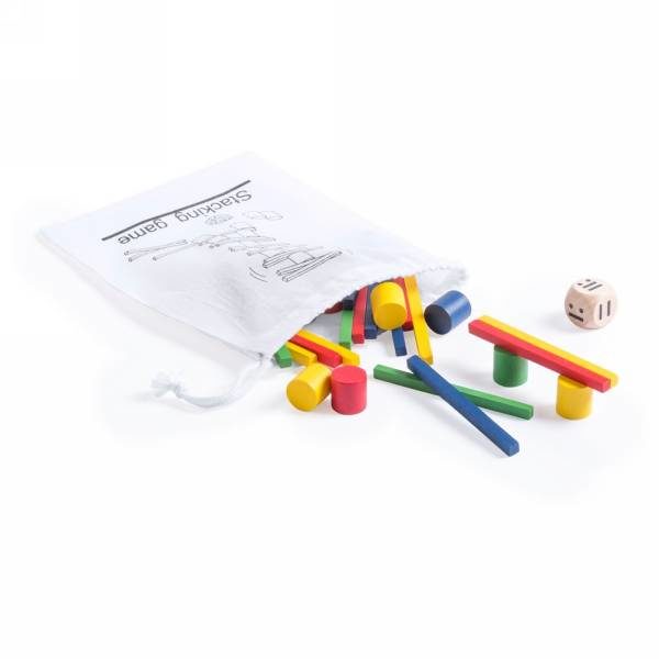 Wooden skill game, 45 pcs, in cotton drawstring bag