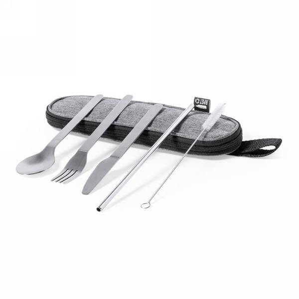 Cutlery set 5 pcs., reusable drinking straw with cleaning brush V8209-19