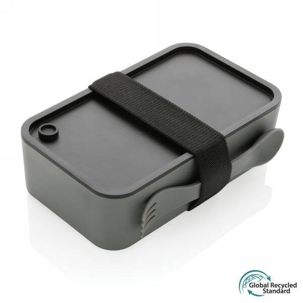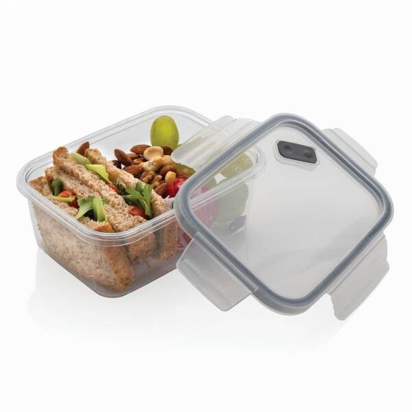 Lunch box 920 ml, transparent lid and silicone closure, additional loose triangular compartment and fork included