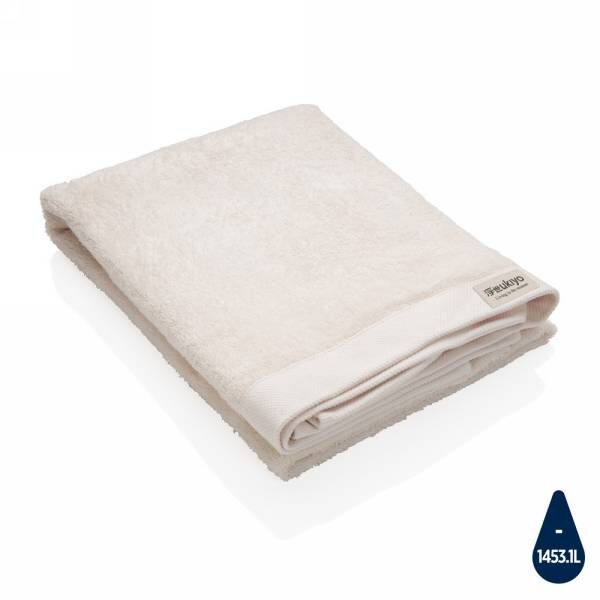 These large spa-quality sustainable bath towels of 500 grams are delightfully thick, silky, and super soft to your skin. The luxurious Ukiyo towels are ultra-soft, quick-drying, and offer great absorbency. Made from 70% OEKO-TEX-certified cotton (No harmful substances or dyes are used during the manufacturing process.) and 30% Recycled cotton. With AWARE™ tracer that validates the genuine use of recycled cotton. Each towel saves 1453.1 litres of water. 2% of proceeds of each Impact product sold will be donated to Water.org. Machine washable. Made in Europe