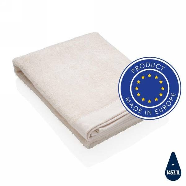 These large spa-quality sustainable bath towels of 500 grams are delightfully thick, silky, and super soft to your skin. The luxurious Ukiyo towels are ultra-soft, quick-drying, and offer great absorbency. Made from 70% OEKO-TEX-certified cotton (No harmful substances or dyes are used during the manufacturing process.) and 30% Recycled cotton. With AWARE™ tracer that validates the genuine use of recycled cotton. Each towel saves 1453.1 litres of water. 2% of proceeds of each Impact product sold will be donated to Water.org. Machine washable. Made in Europe
