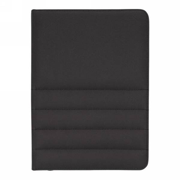A4 PU zippered tech portfolio. Inside: a phone/tablet stand, phone holder with see-through window which allows you to view and access your mobile device. Suitable for iPhone 6 & Samsung S6 etc. Gadget holders for example usb, charging cable & powerbank. 5 card holders and one ID holder. Expandable file pocket for documents or tablet. Including 1 A4 memopad with 20 sheets. Compatible with all iPad, Android, and Microsoft Windows tablets.