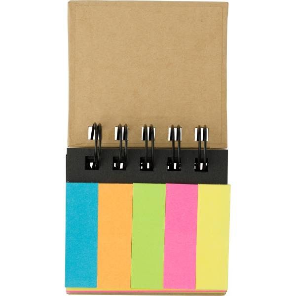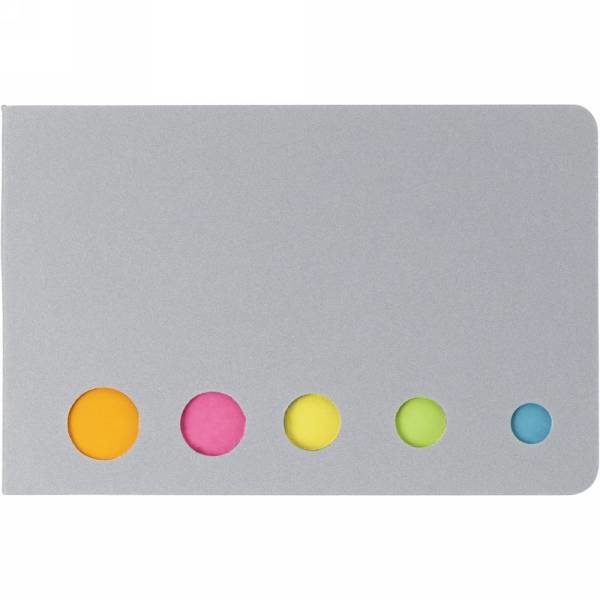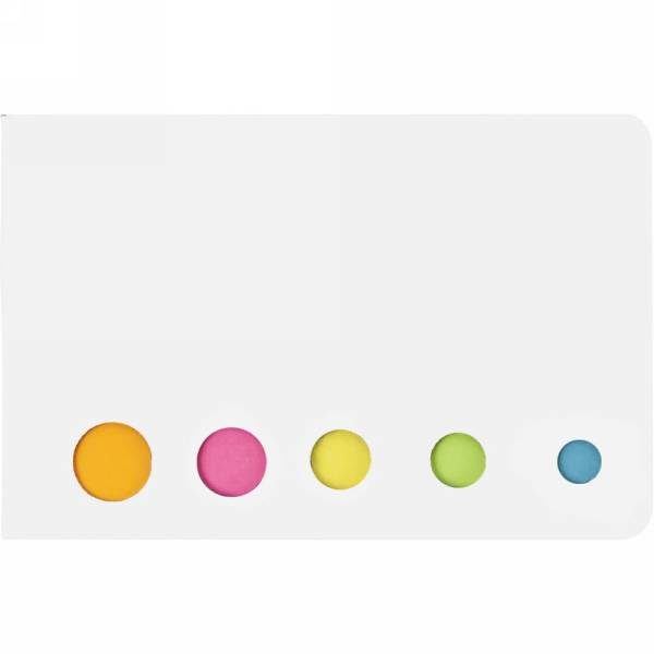 Card cover holding 5 different coloured sticky notes, each with 20 sheets
