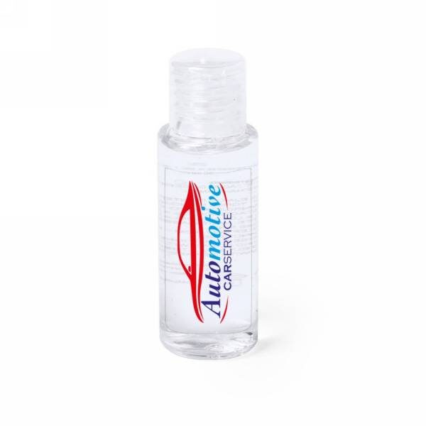 Antibacterial hand gel in transparent bottle with doser and security lid, solution with 70% alcohol content, 30 ml