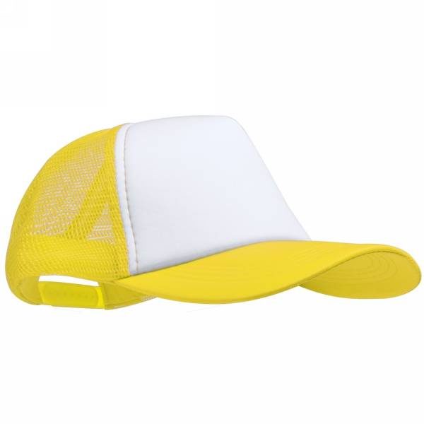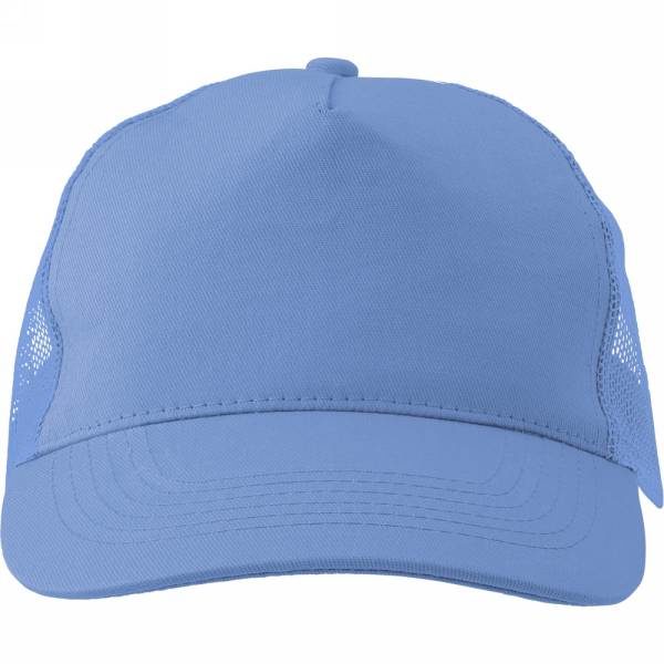 Cap with 5 panels, adjustable plastic fastening, mesh back panels