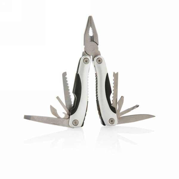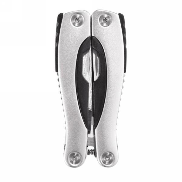 Aluminium multitool, handle with black details, 14 functions, packed in black 600D pouch.