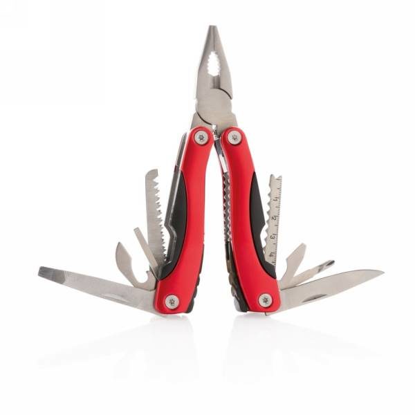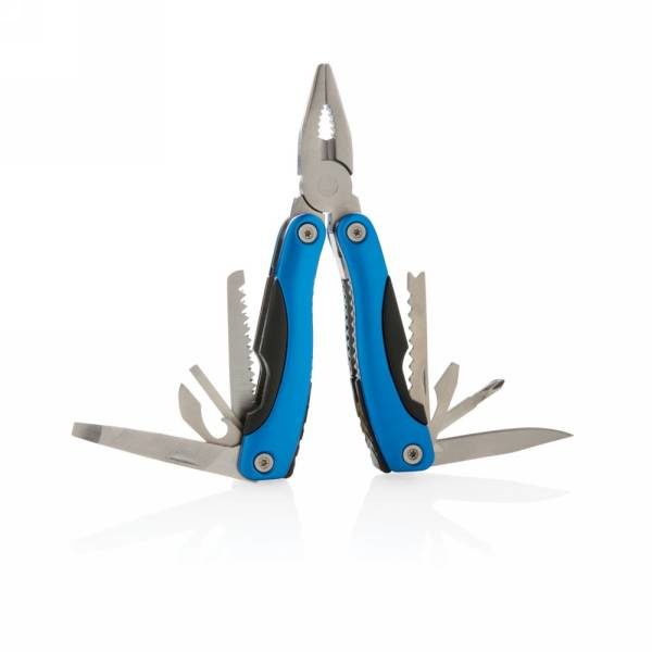 Ultra-strong tool with 13 functions. Packed in luxury gift box including high quality 1680D pouch. Aluminium material body and stainless steel tools. Tools included: Long nose plier, standard plier, wire cutters, serrated blade, bottle opener, large flat screwdriver, medium flat screwdriver, knife, file, phillips screwdriver, can opener,  small flat screwdriver, saw.
