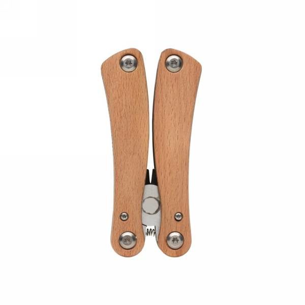 Compact and durable multitool with 12 functions. With beech wood case and high quality stainless steel tools. Tools include: long nose plier, standard plier, wire cutters, serrated blade, small knife, medium flat screwdriver, bottle opener, large flat screwdriver, knife, small flat screwdriver, phillips screwdriver, file & cleaner. Packed in gift box.
