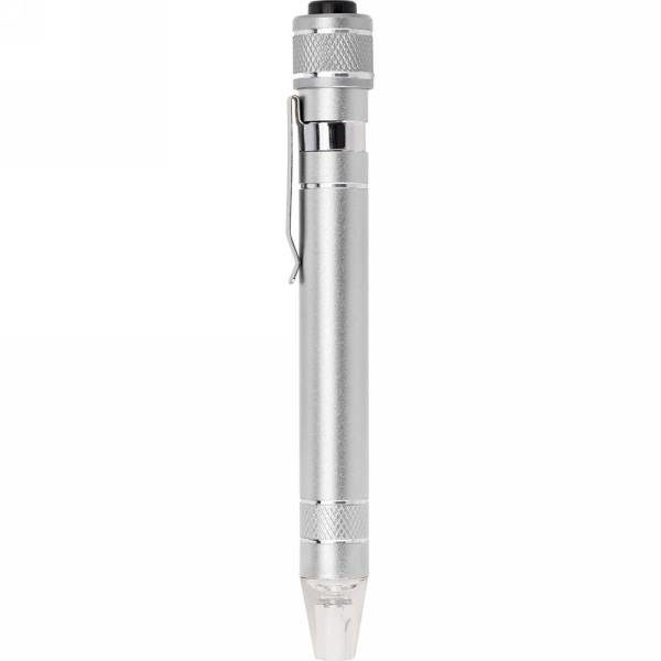 Pen shaped screwdriver set with light, includes 3 flat head and 3 Philips screw parts