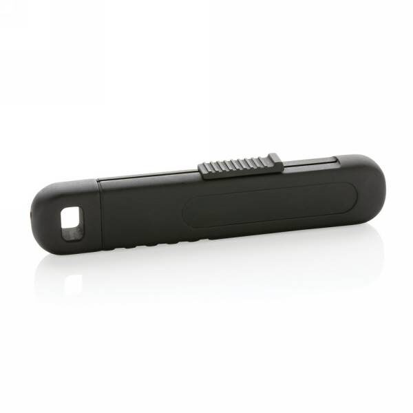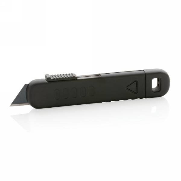 Parcel cutter with exchangeable blade. ABS body and 18mm SK4 steel knife inside. With locking button.
