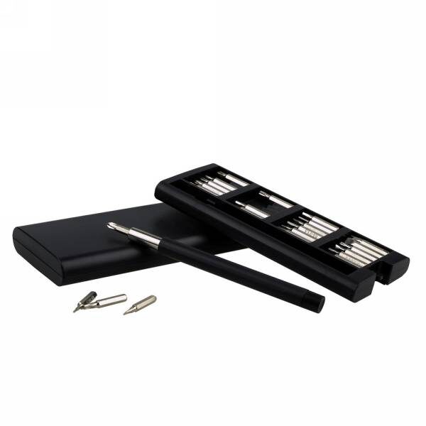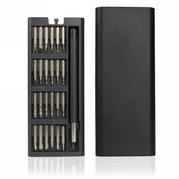 Screwdriver set, 24 bits in magnetic case with push open/close system, handle with magnet to hold bits in place