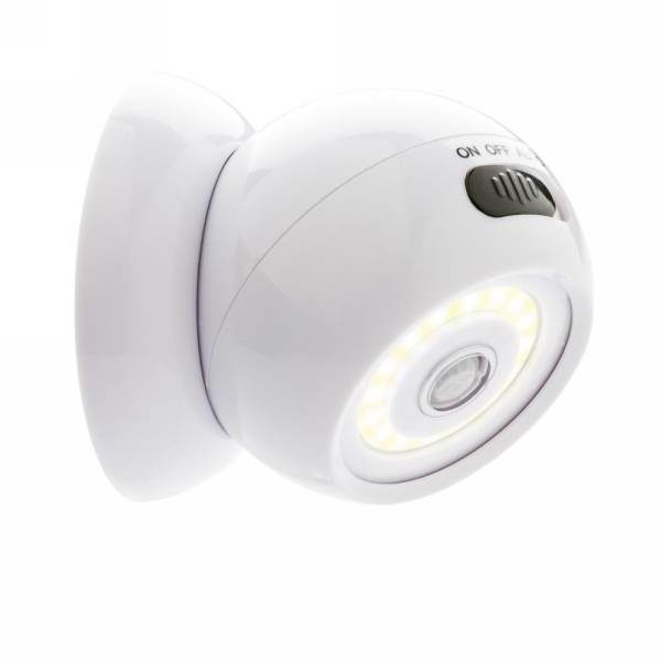 Ultra bright COB light with magnetic base element made out of ABS. The light has a motion sensor that will detect movement and light up when the movement is detected in a dark environment. The base can be attached to any smooth surface using the double-sided 3M tape on the bottom of the base. The light itself is magnetically attached to the base. The light can be turned in any direction to light up exactly where you need it. Includes batteries for direct use.
