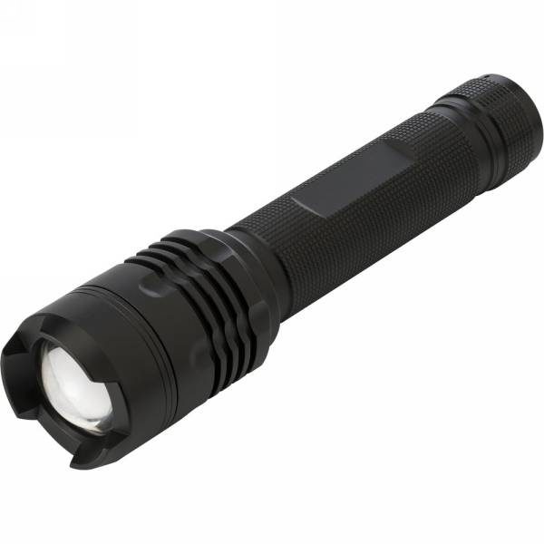 Super bright and tough 10W CREE led torch that can handle even the most difficult conditions. The durable aluminum torch is IPX 4 waterproof and shockproof up to 1 metre drop. The beam of the torch can be adjusted to focus or to light up a bigger area. With belt clip for carrying the torch. 250 lumen and working time of 6 hours. Includes batteries for direct use. _x000D_