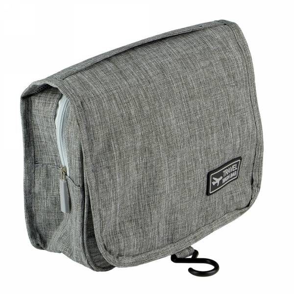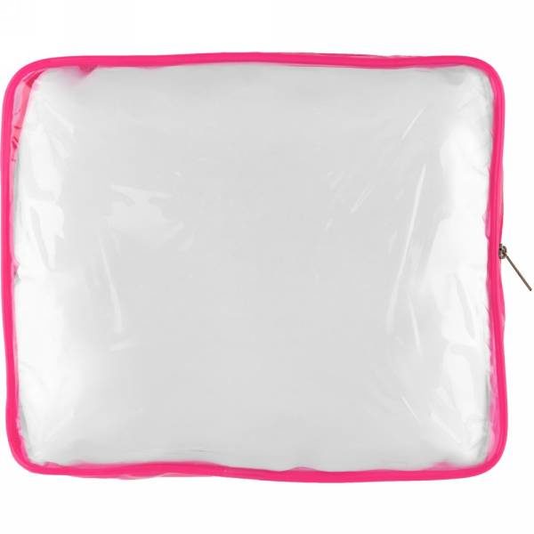 Two tone 600D polyester toiletry bag with enough space for all your beauty products and make-up. PVC free.