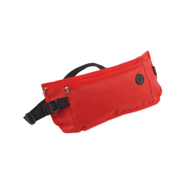 Waist bag with zipped pockets, earphones outlet, min. circ. approx. 65 cm, max. circ. approx. 93 cm (plus stretching)