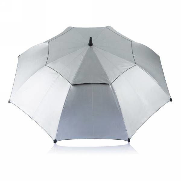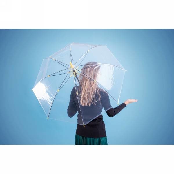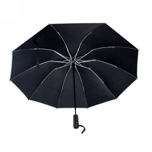 This manual open/close LED umbrella makes walking in the rain fun! The umbrella has 8 white led lights on each rib. Besides giving a beautiful light effect it also enables you to be visible and to walk safely at night. In the handle you can find a practical flash light. The umbrella is made of 190T pongee polyester and features a fibreglass frame and ribs, making it storm proof. Including 3 AAA Alkaline batteries.