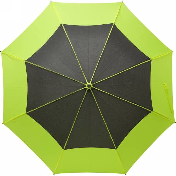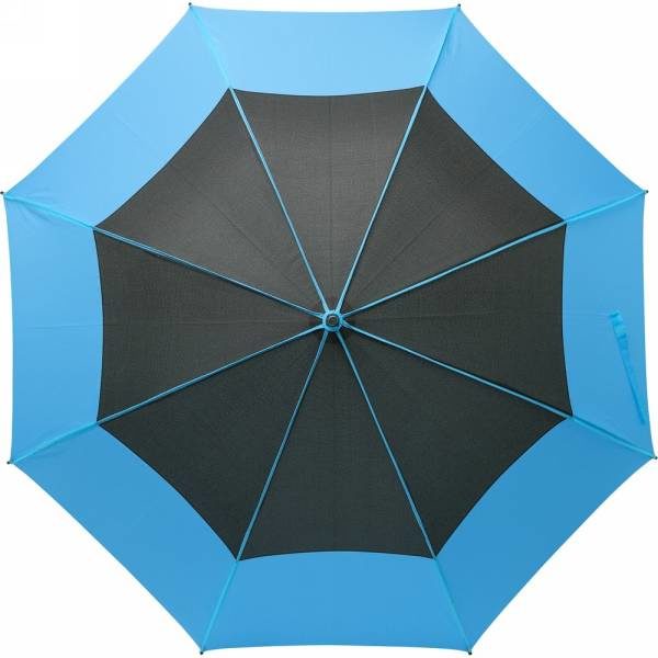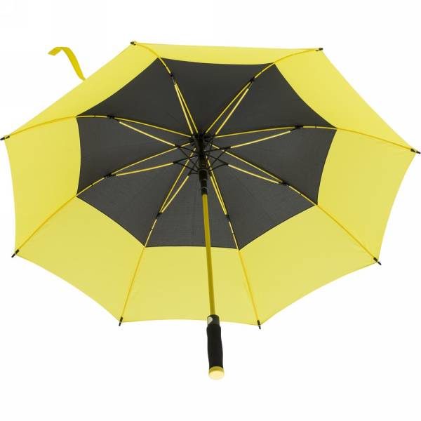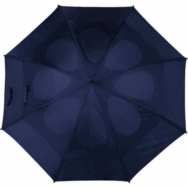 Stormproof vented manual umbrella, 8 panels, metal frame and shaft, foam handle, velcro closing, matching sleeve included
