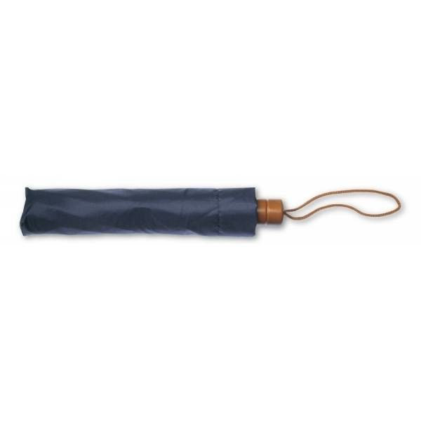 Foldable, manual umbrella, 8 panels, with wooden shaft and nylon sleeve, velcro closing