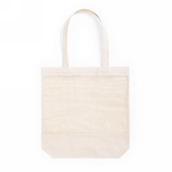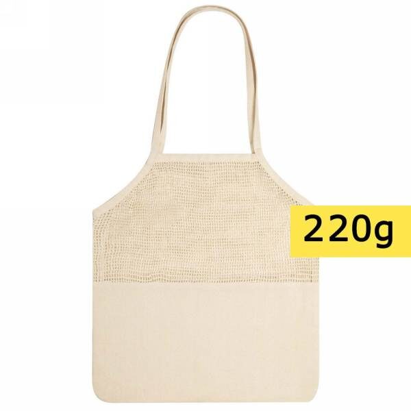 Cotton shopping bag, mesh upper part, bottom made of uniform material