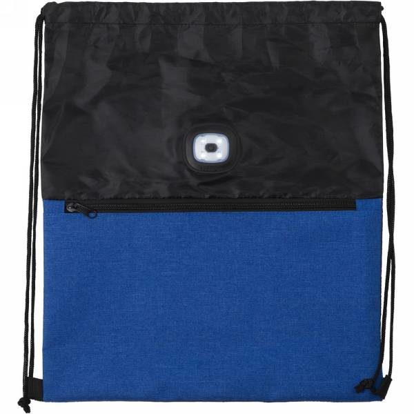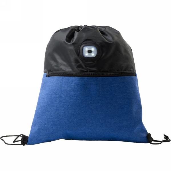 Drawstring bag with light, zipped front pocket