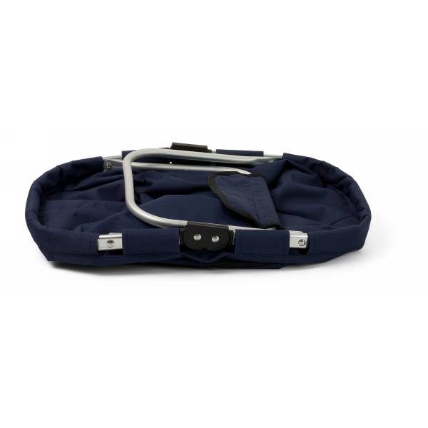 Foldable shopping basket with zipped side pocket and aluminium frame