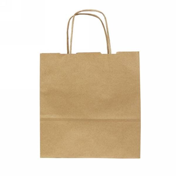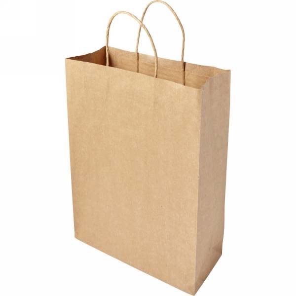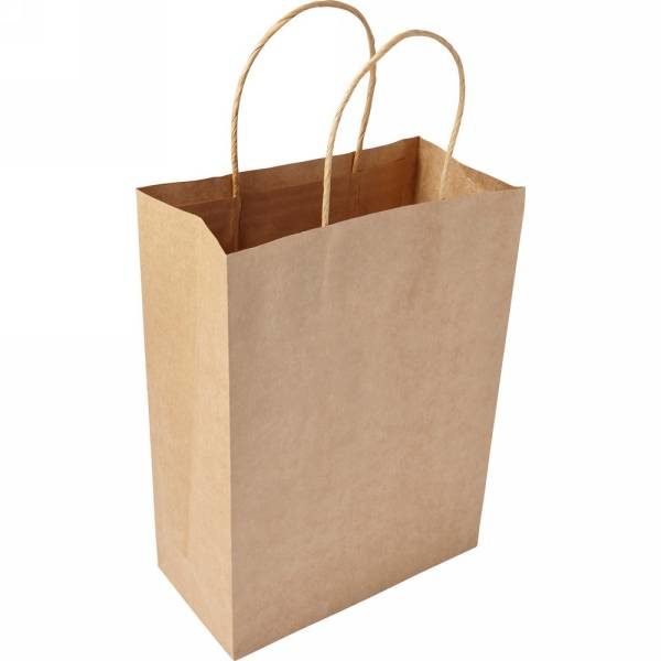 Kraft paper shopping bag with PE laminated interior and short fabric handles (2,5 x 52 cm)