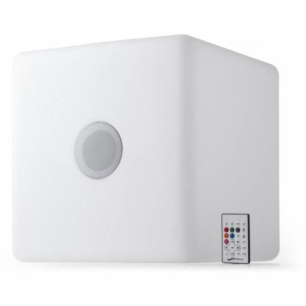 Wireless speaker, speakers on two sides, waterproof (IP44), big LED lamp with changing colour fuction, remote control included to change the song or color of the backlight, input 100V-240V, 50/60Hz, output 5V/1A, USB cable included