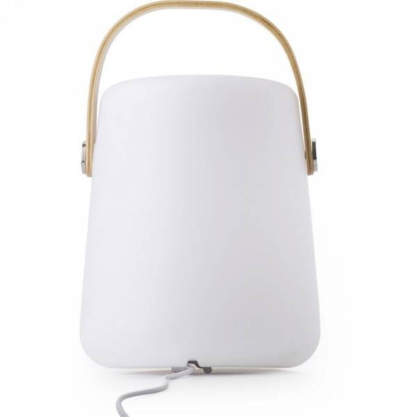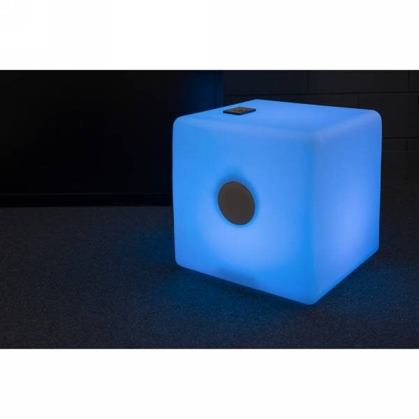 Wireless speaker with handle, waterproof (IP44), LED light with changing colour function, remote control included to change the song or colour of the backlight, input 100V-240V, 50/60Hz, output 5V/1A, USB cable included