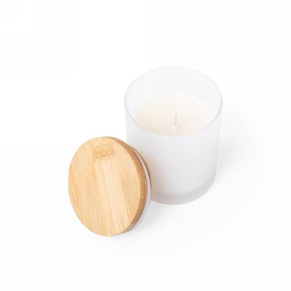 Vanilla aroma candle, in glass candle holder with bamboo lid