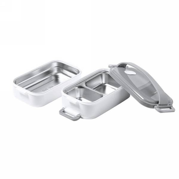 Thermal lunch box 850 ml, 2 independent compartments (500 ml and 350 ml) with stainless steel trays, option of adding hot water to prolong keeping warm temperature, BPA free